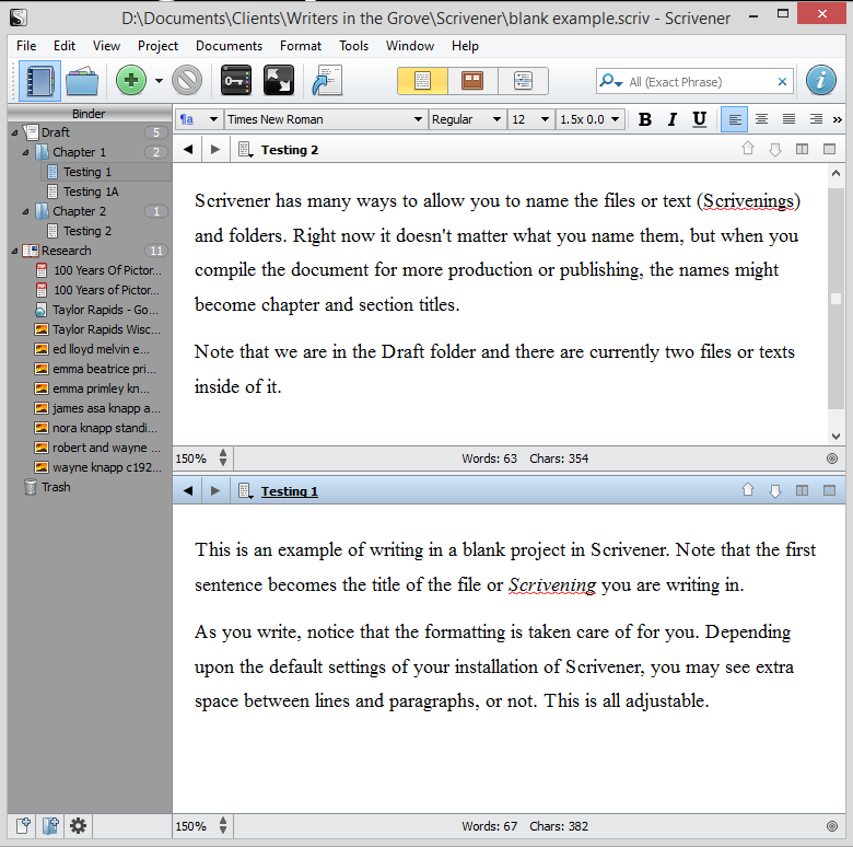 Scrivener – Split Screen view horizontal – Lorelle VanFossen