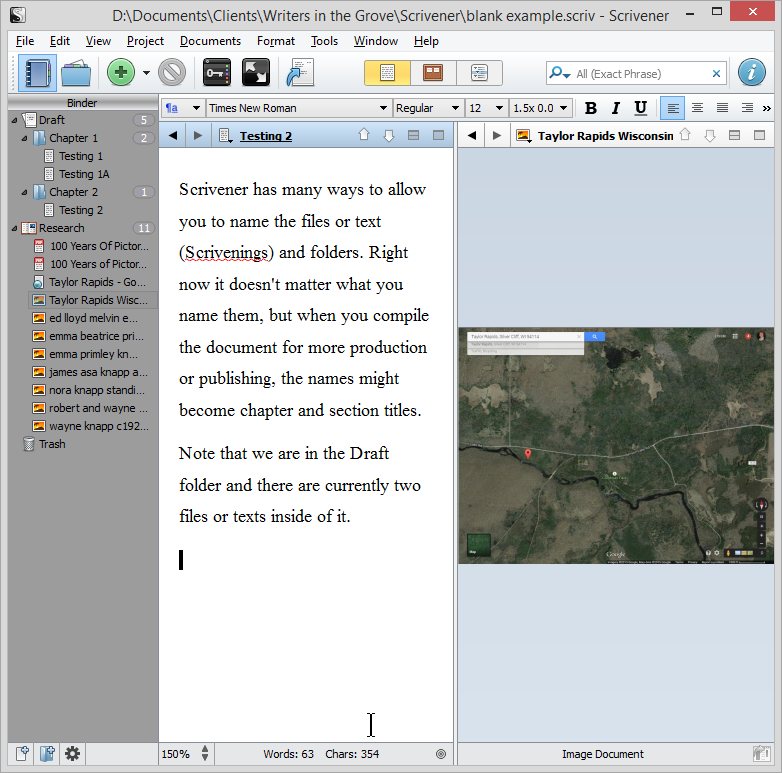 Scrivener – Split Screen with Map in Research – Lorelle VanFossen