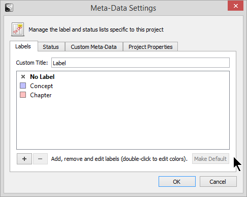 Scrivener – Meta-Data Default Label List – Lorelle VanFossen