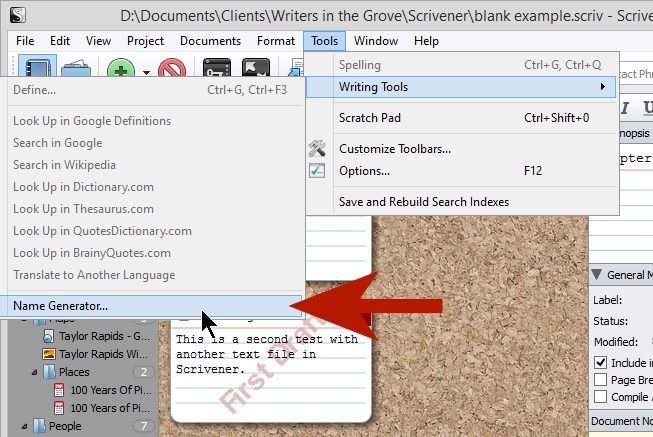 Scrivener – Tools – Options – Writing Tools – Name Generator – Lorelle