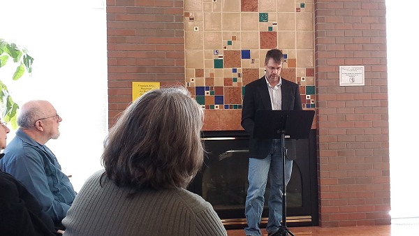 Brent VanFossen reads poetry at Poetry Reading for Writers in the Grove at Library